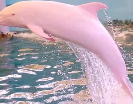 Моряку удалось заснять на камеру розового дельфина. Потрясающие кадры