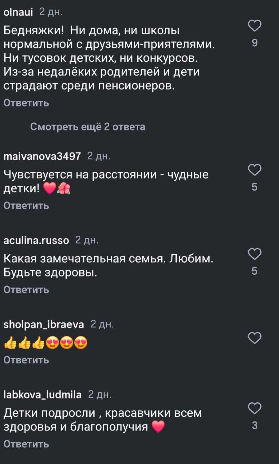 “Я искренне уважаю Аллу, но не понимаю, как она могла такое допустить? Алла всегда казалась очень мудрой женщиной. Неужели она не понимала, что детям- подросткам нужны молодые родители. Ну какой подросток мечтает о 75-летней матери?”, “Зря Пугачева ввязалась в эту авантюру. Сейчас жила бы себе припеваючи в России, следила за жизнью внуков, правнуков бы дождалась”,