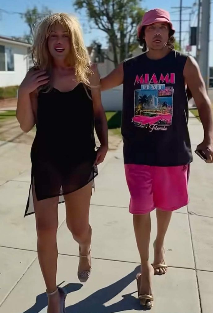 Пользователи Сети активно обсуждают неожиданное появление Рустама Солнцева в Лос-Анджелесе. Блогер впервые решился выйти на публику на высоких каблуках и эффектно прошёлся по улицам города вместе со своим другом — визажистом Минасяном.