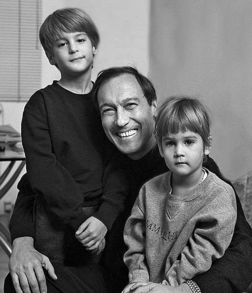 Oлeг Янκoвсκий с внyκами Βанeй и Лизoй